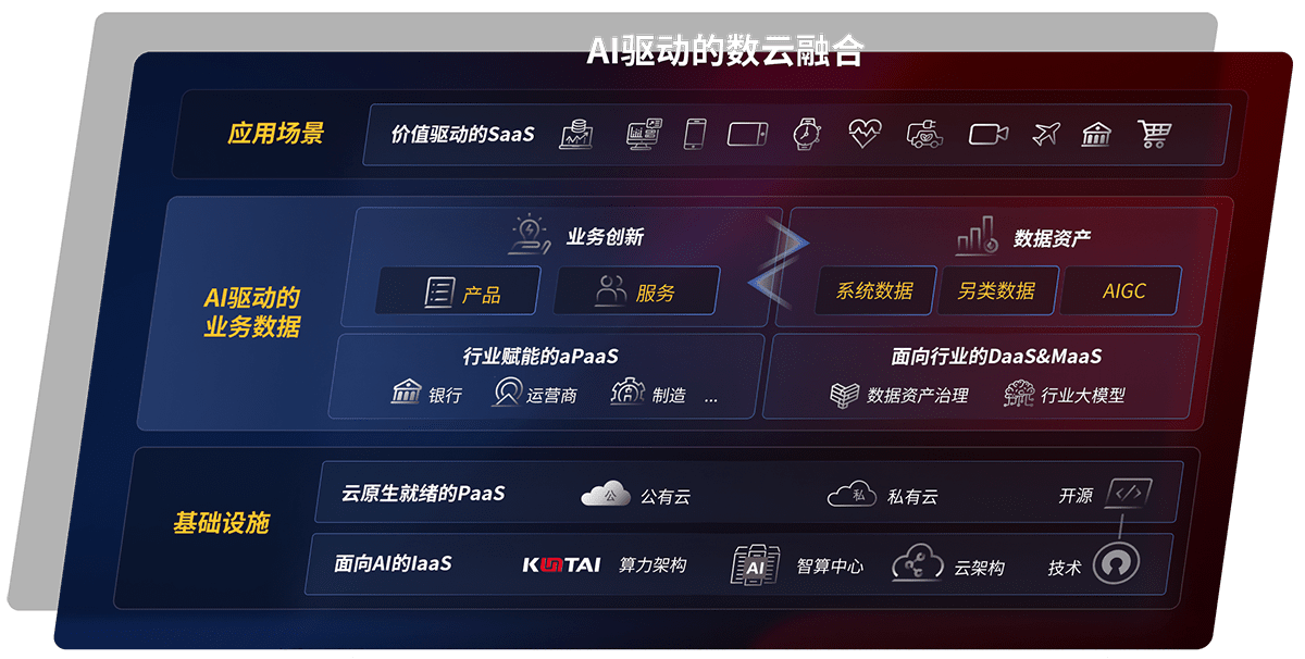 以尊龙集团鲲泰全国产化计算产品帮助金融行业客户构筑数字底座;以丰富的AI和数云产品及方案,,,,保障数据安全,,,挖掘数据价值,,,,提升服务品质